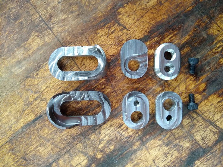 17-4 stainless steel and anodized 7075 and 6061 aluminum parts for an in-house designed mountain bike suspension system:
